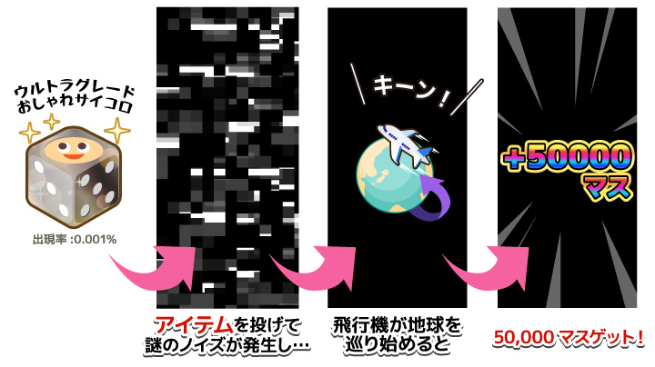イベント期間中、「おしゃれサイコロ」を使うと0.001%の確率で「ウルトラグレードおしゃれサイコロ」が出現します。