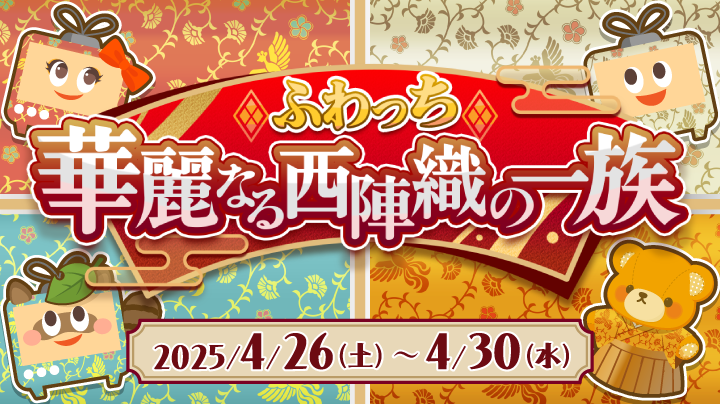 - イベント開催期間中に、イベントの設定で「ふわっち華麗なる西陣織の一族」を選択して開始した配信が対象となります。