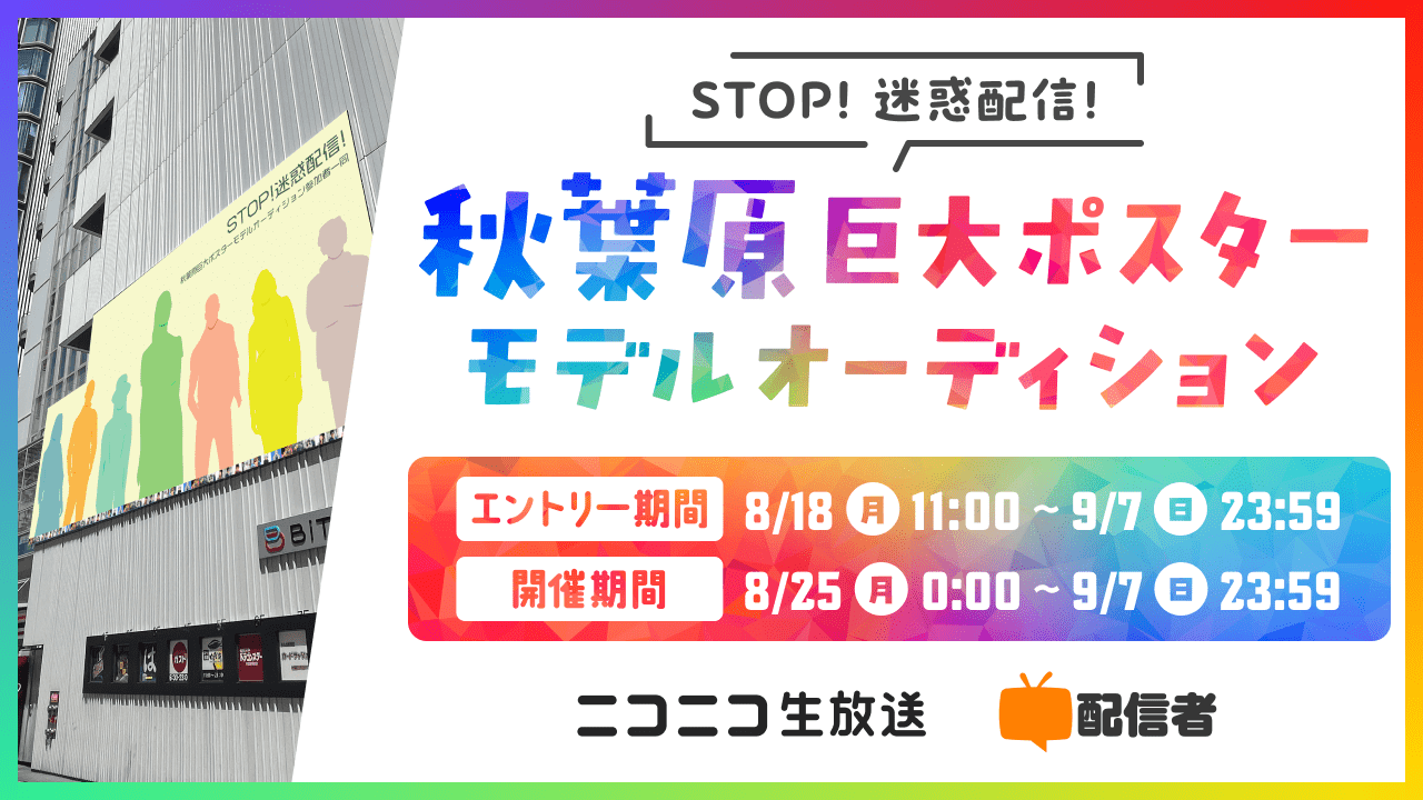 2025年8月25日(月)より、ニコニコ生放送にて、「秋葉原」巨大ポスターモデルオーディションを開催いたします!