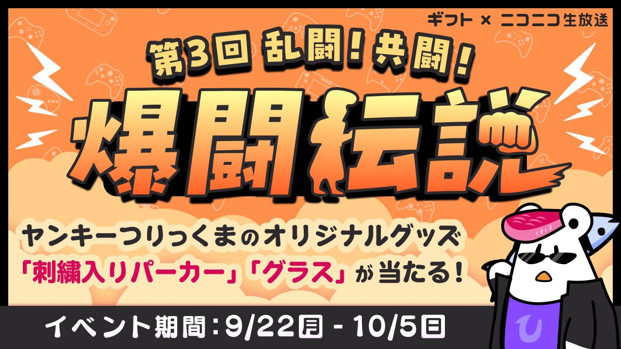 2025年9月22日(月)~10月5日(日)まで、ニコニコ生放送で「第3回 乱闘!共闘!爆闘伝説イベント」を開催します。