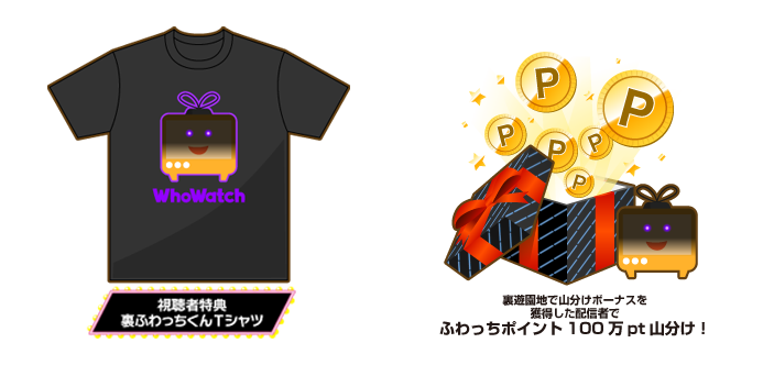 また、裏ボーナスを発生させた視聴者には「裏ふわっちくんTシャツ」をプレゼントします。