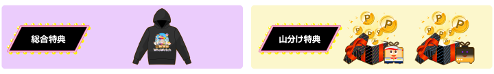 前半・後半それぞれの総合ランキング上位入賞者には、イベント限定特典の「ふわっちキャラ大集合・虹の遊園地パーカー(刺繍仕様)」をプレゼントいたします。