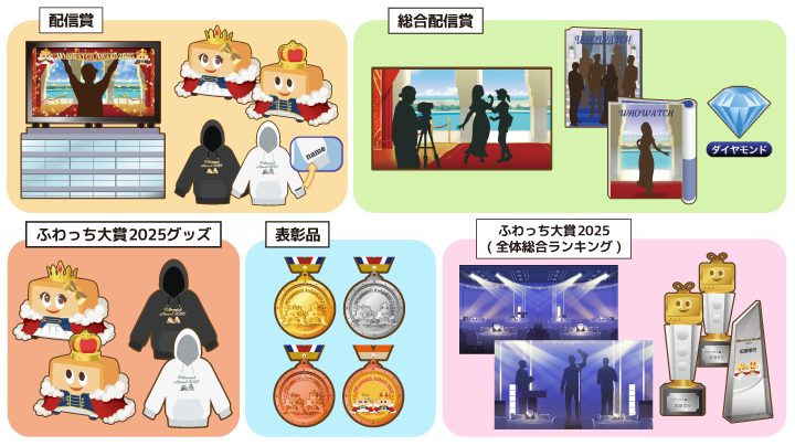 特典は東京都内ビジョン広告への出演やふわっち大賞2025限定グッズをご用意。