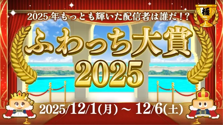 | ふわっち大賞2025 | 2025年12月1日(月)00:00 ~ 2025年12月6日(土)24:00 |