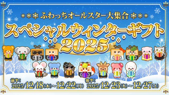 • 前半に獲得した「ウィンターカード」の有効期限は2025年12月22日(月)23:00まで、後半に獲得した「ウィンターカード」の有効期限は、2025年12月27日(土)23:00までとなります。