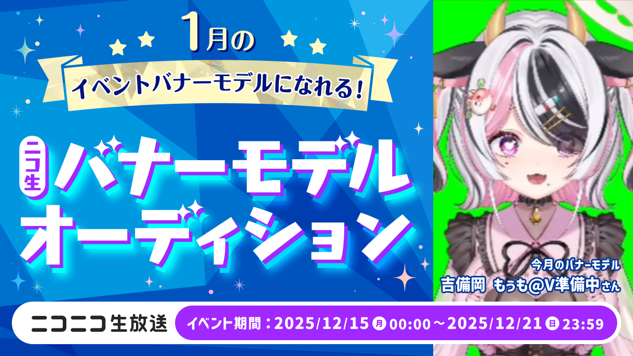 ニコニコ生放送にて『1月のイベントバナーモデルになれる!ニコ生バナーモデルオーディション』を開催いたします。