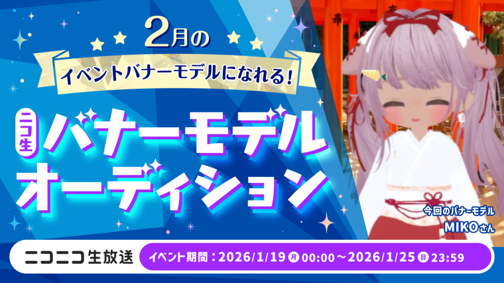ニコニコ生放送にて『2月のイベントバナーモデルになれる!ニコ生バナーモデルオーディション』を開催いたします。